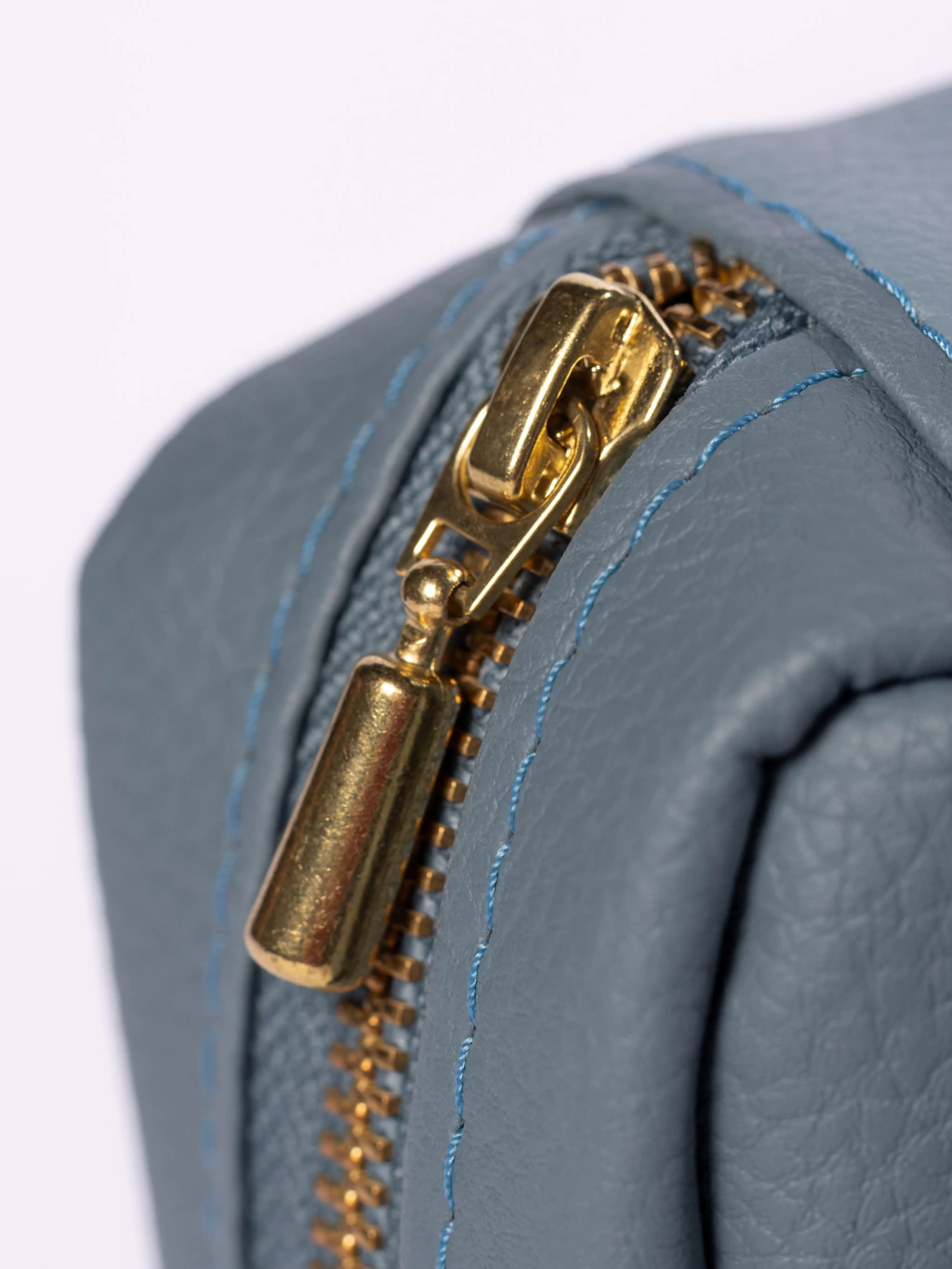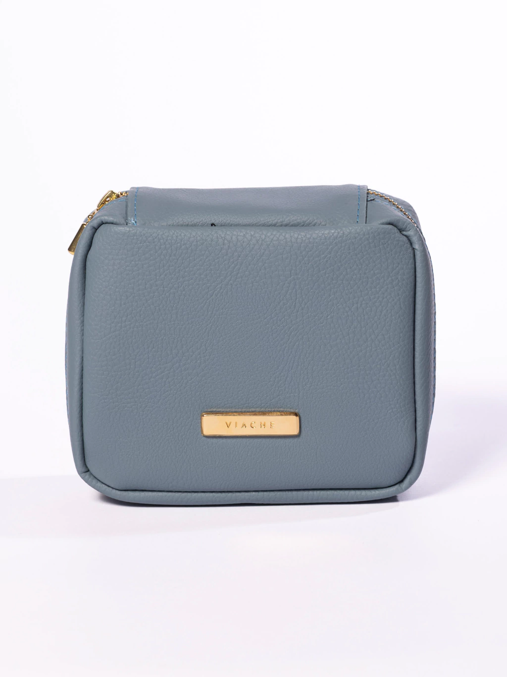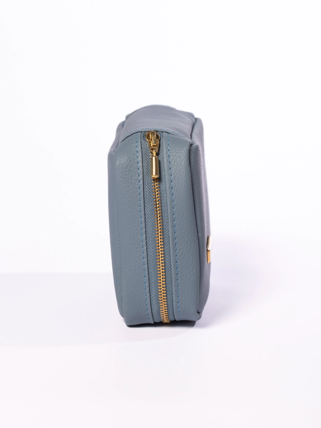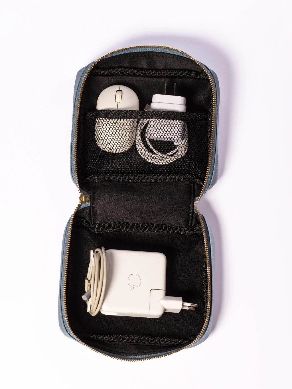 El porta cables Azulino – Línea Deluxe combina diseño minimalista y funcionalidad. Su exterior en cuero ecológico texturado color azulino y los herrajes metálicos dorados le aportan un aire sofisticado, ideal para quienes valoran la organización con estilo.
