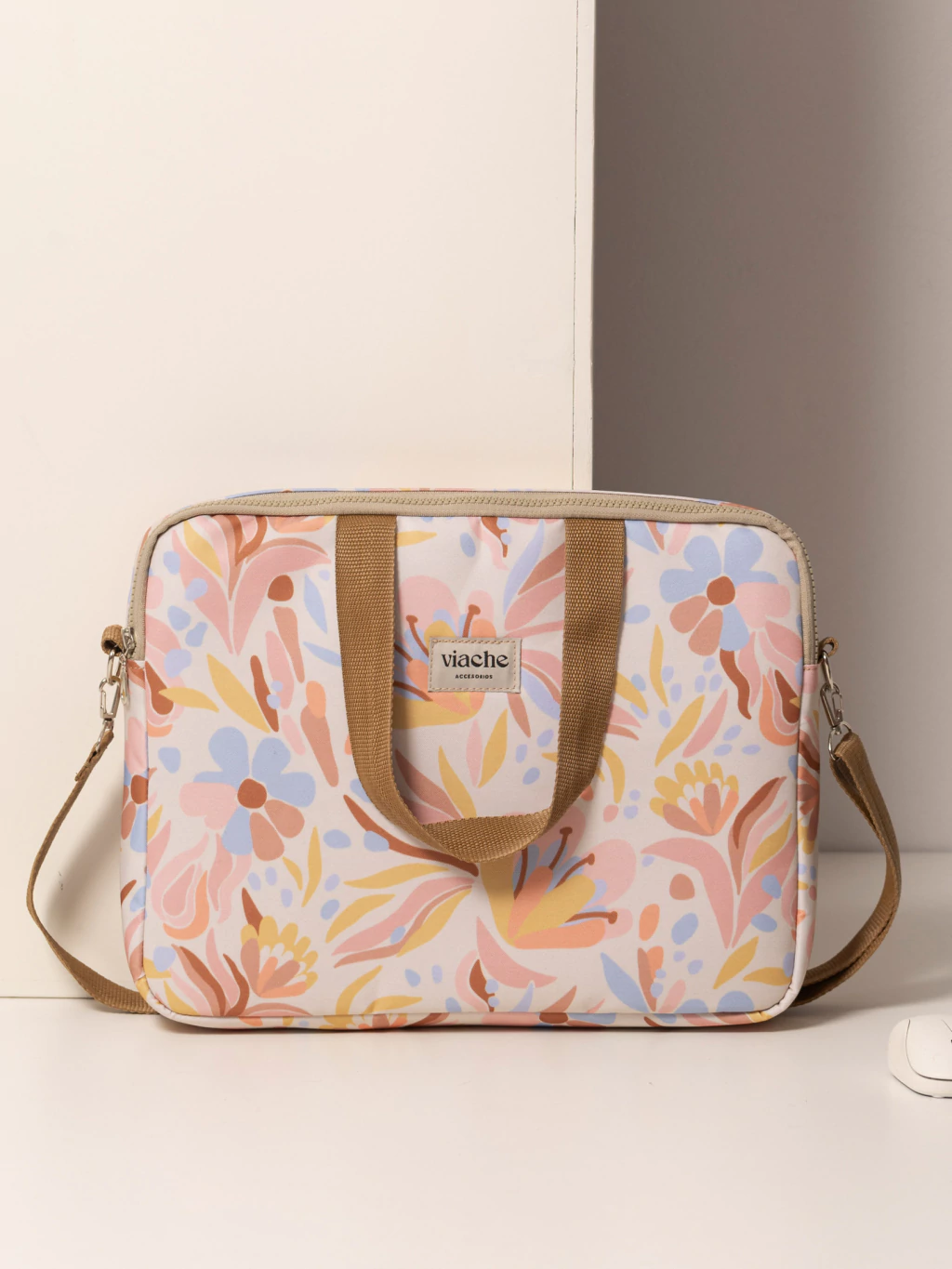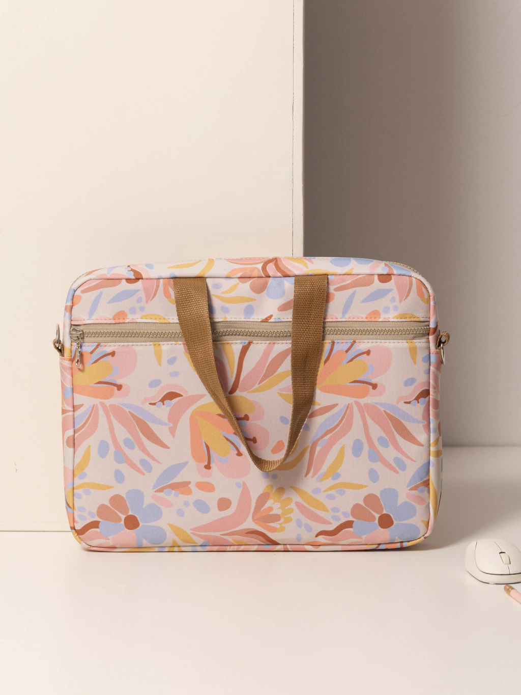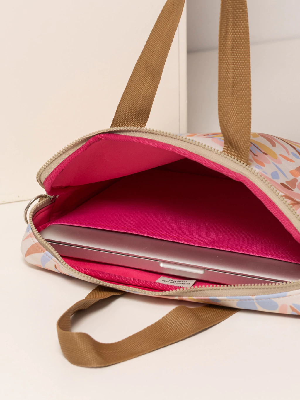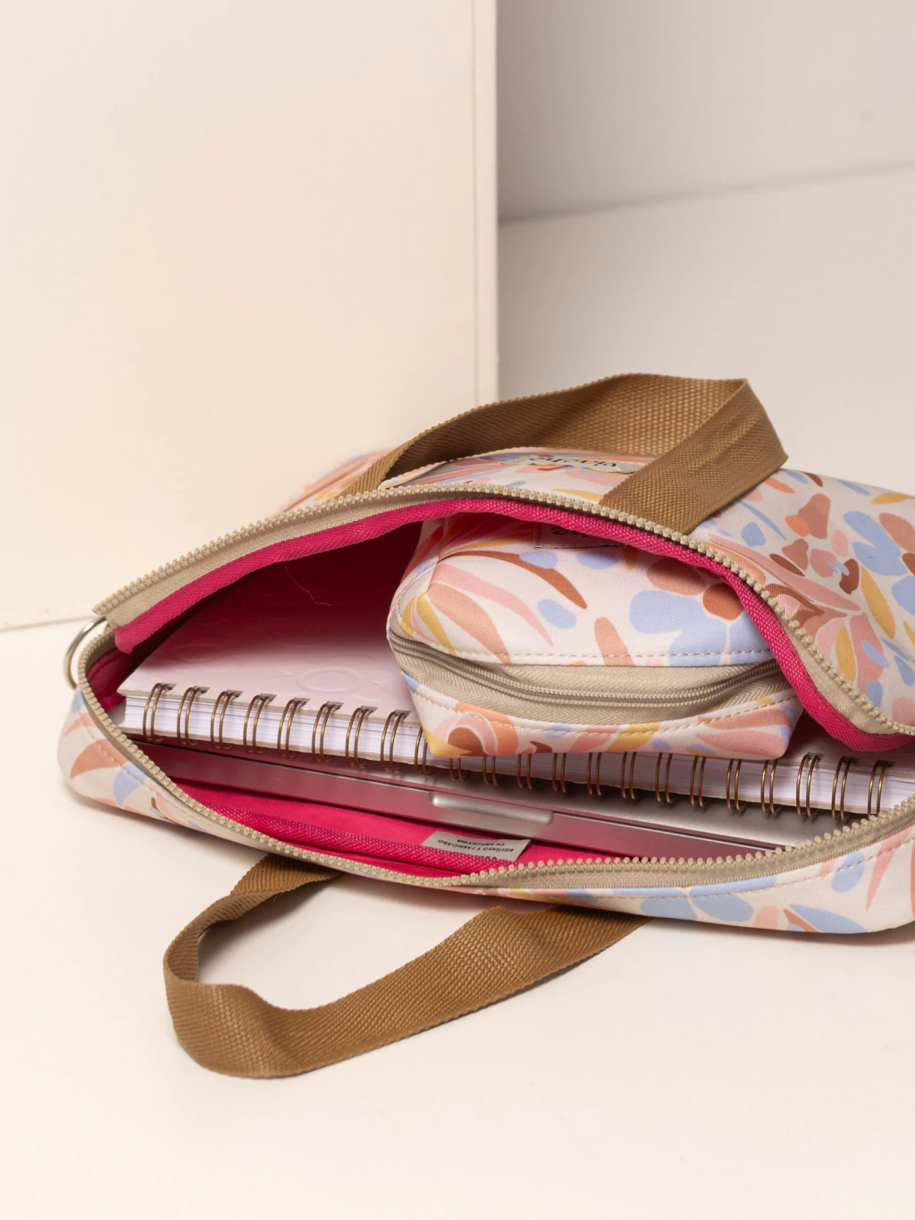 En la parte trasera, tiene un bolsillo con cierre ideal para llevar cuadernos y documentos.