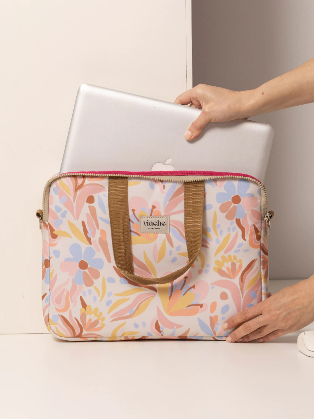 Confeccionado en gabardina impermeable con interior de neoprene acolchonado para cuidar tu notebook.