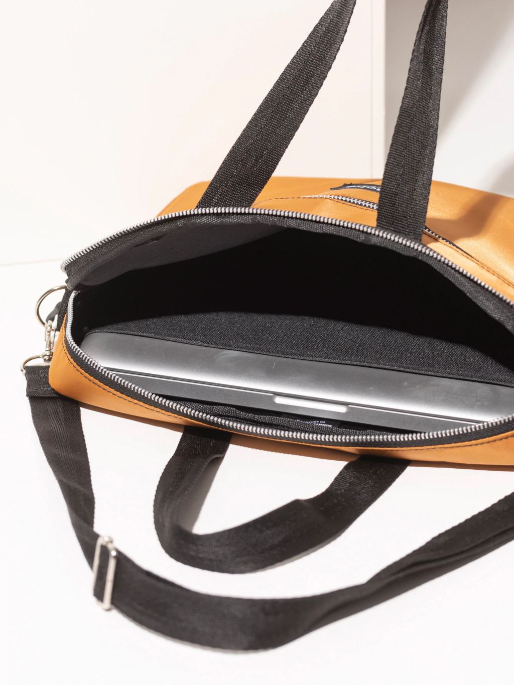 Confeccionado en lona satinada impermeable, con interior de neoprene acolchonado para proteger tu notebook.