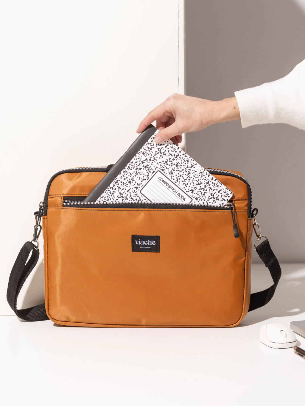 En su interior, incluye una división que separa la notebook de los accesorios para evitar rayaduras.