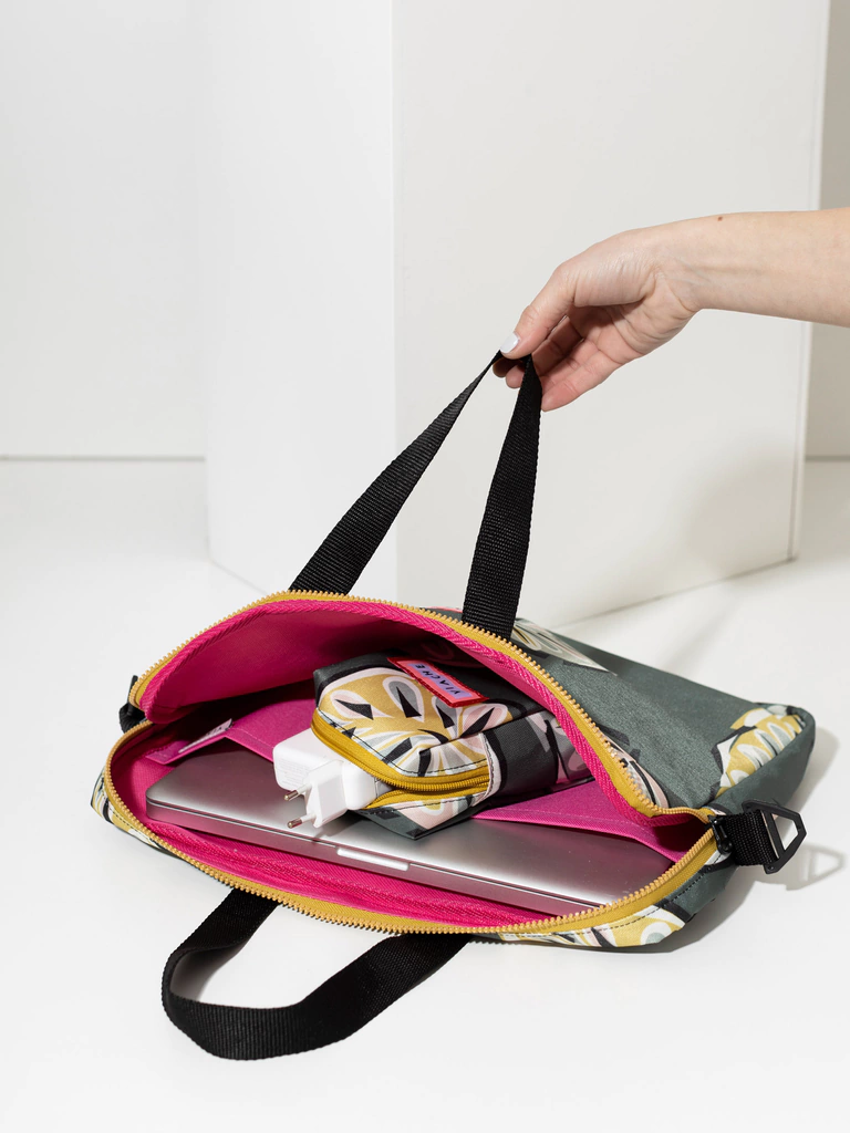 Nuestro maletín está confeccionado en gabardina impermeable, con interior de neoprene acolchonado que brinda máxima protección.