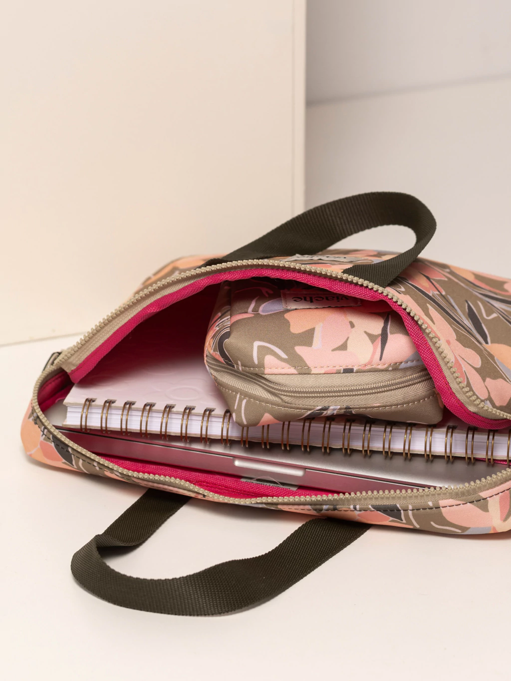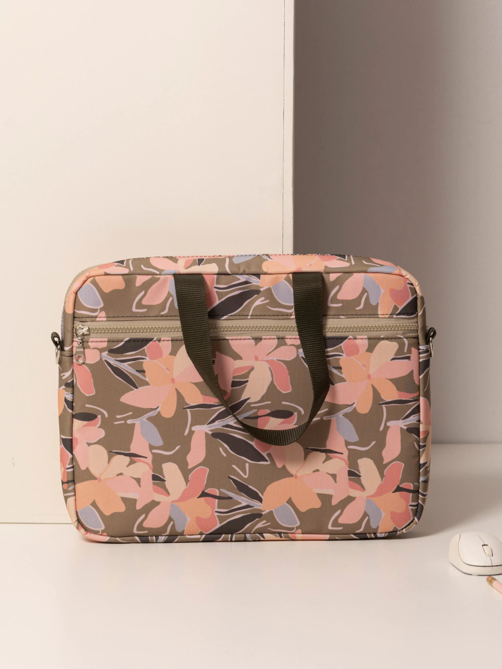 En la parte trasera, tiene un bolsillo con cierre ideal para llevar cuadernos y documentos.