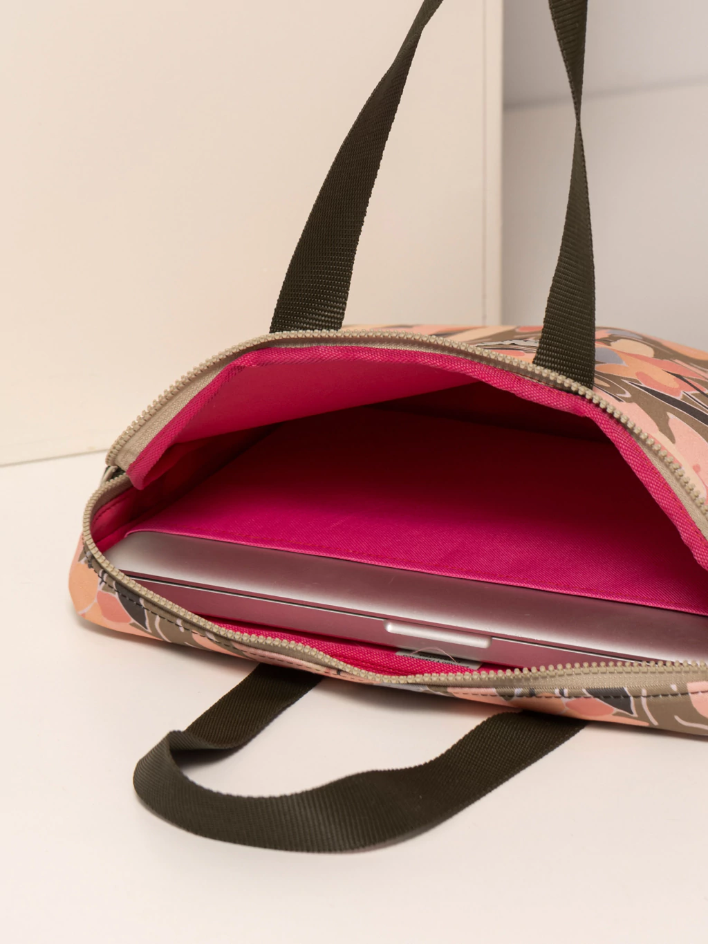 Confeccionado en gabardina impermeable con interior de neoprene acolchonado para cuidar tu notebook.