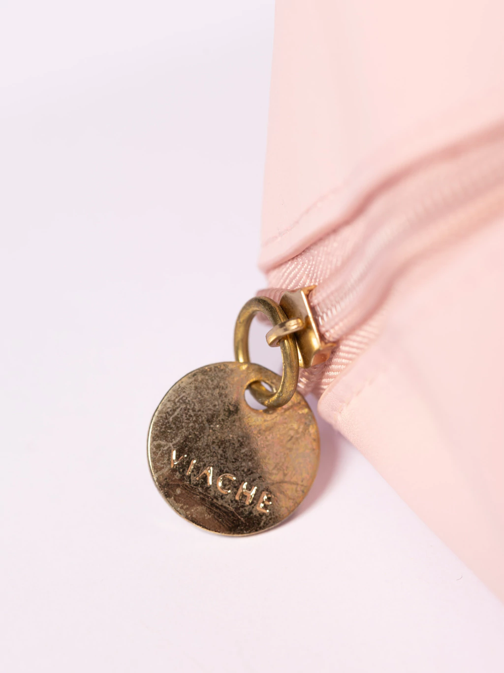 Cierre: cierre metálico con tirador dorado grabado “Viache”