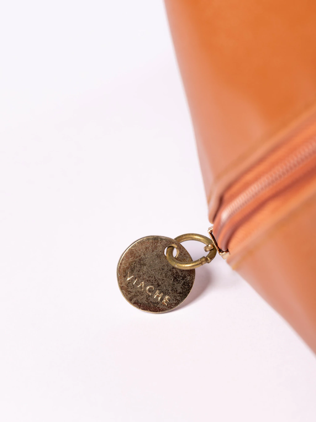 Cierre: cierre metálico con tirador dorado grabado “Viache”