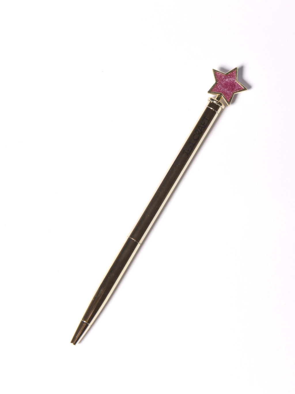 La lapicera dorada con estrella rosa combina elegancia y fantasía en un accesorio de papelería que vas a querer tener siempre cerca. Su cuerpo metálico color oro y su detalle superior con estrella brillante aportan estilo y personalidad a tu escritorio o cartera.
