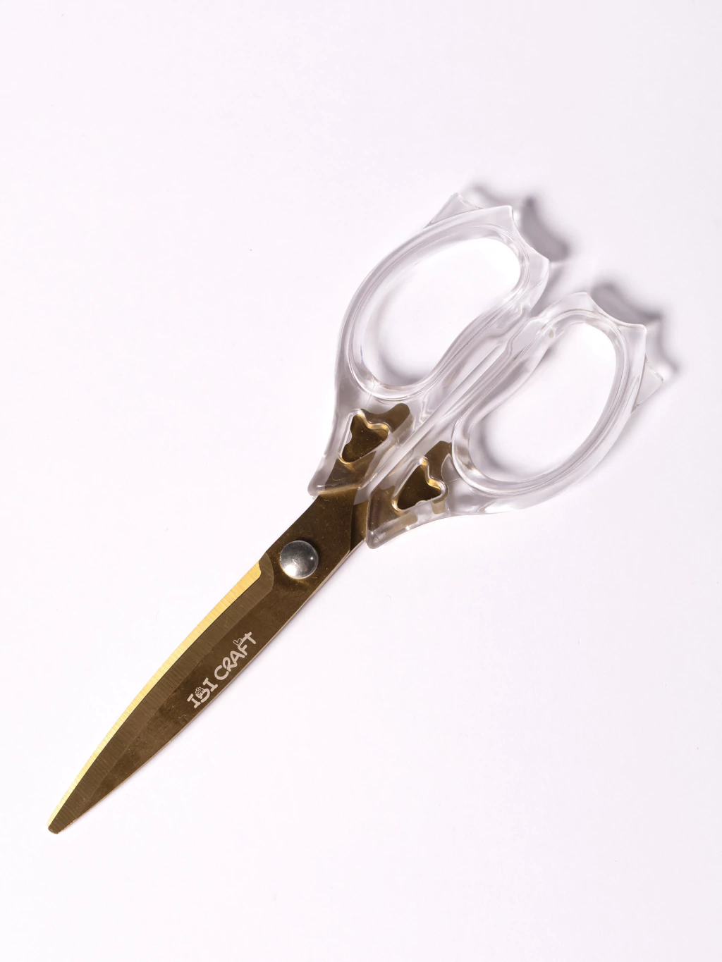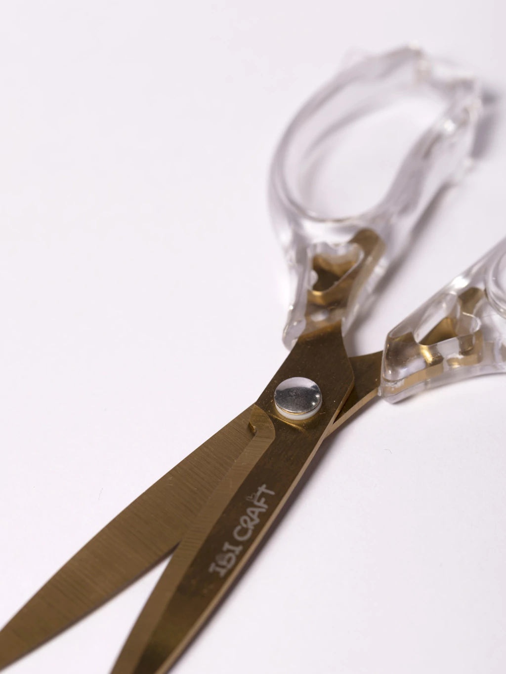 Tijera acrílica dorada combina estilo y funcionalidad en una herramienta imprescindible para tu escritorio. Su mango transparente con acabado acrílico y sus hojas metálicas doradas crean una pieza de diseño tan estética como práctica.